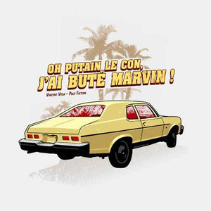 “T’es peut-être passé sur une bosse, je sais pas ??”. On cherche toujours l’explication au coup de feu pour le moins “sanglant” de Vincent sur Marvin, mais la scène est en tout cas à l’image du cultissime Pulp Fiction: un subtil mélange de violence, d’humour et de dialogues savoureux, dont on ne pouvait pas ne pas faire un tee-shirt !