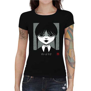 Si vous cherchiez un t-shirt Mercredi reconnaissable entre mille, c’est par ici ! Immense succès populaire, la série a remis au goût du jour la Famille Addams, que beaucoup ont connu au travers du film de Barry Sonnenfeld dans les années 90. Avec son caractère froid et sarcastique, son intelligence et son goût pour le macabre, Mercredi Addams est unique en son genre ! Dotée dans la série Netflix de pouvoirs psychiques, elle représente une héroïne moderne et attachante, qui méritait bien son tee-shirt Checkpoint ! On vous en livre ici une version très dark, évidemment monochrome, fidèle à ce personnage fasciné par la mort.