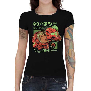 LE t-shirt parodie de Metroid que tout le monde va vous envier ! Bien qu’elle ne soit pas la plus prisée de la famille Nintendo, la licence née en 1986 sur Famicom Disk System n’a eu de cesse de se distinguer par son gameplay nerveux et son univers SF envoûtant. Elle a également innové en son temps, en faisant d’une femme l’héroine de l’aventure ! Et c’est justement à la chasseuse de primes Samus Aran que l’on a souhaité rendre hommage, en faisant tomber le masque de sa splendide et emblématique armure. Un sublime tee-shirt, bourré de détails, qui fera le bonheur de tous les fans de la saga !