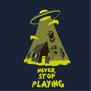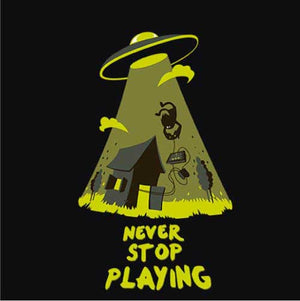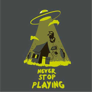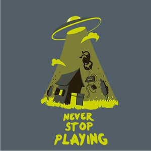 Tous les gamers le savent, et ce t-shirt en atteste d’ailleurs avec humour, il n’est jamais évident d’arrêter une partie ! Qu’on soit plongé dans un long mode solo, ou bien dans une courte session multi, éteindre la console ou l’ordinateur relève du défi. Les jeux vidéo nous immergent dans d’autres mondes, nous offrent des sensations comme nuls autres… et ça les rend extrêmement addictifs ! De là à ne pas pouvoir arrêter de jouer en pleine invasion extraterrestre ? Le doute est permis ! Un tee-shirt ultra stylé pour tous les maîtres du pad et du clavier.