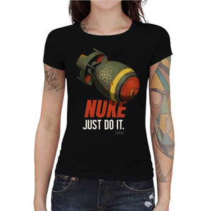 Affichez votre style avec le t-shirt "Nuke Just Do It", un design qui allie humour et originalité. Ce modèle fusionne la célèbre bombe Nuke du jeu vidéo Fallout avec l’iconique slogan "Just Do It". Parfait pour les fans de jeux vidéo, ce t-shirt unique apporte une touche décalée à votre garde-robe. Que vous soyez un gamer passionné ou un amateur de mode geek, ce t-shirt saura faire parler de lui. Fabriqué dans des matériaux confortables, il est idéal pour un look casual et cool. Osez la différence avec ce clin d'œil à la culture pop !
