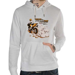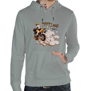 Les premières fraicheurs arrivent, et vous n’êtes plus sûr que votre tee-shirt va suffire ? Pas de panique ! Ce Sweat Moto - Pas de fumée sans pneu va tout simplement vous sauver la vie !