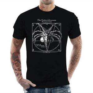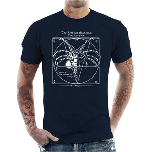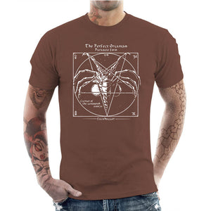 Quand l’ésotérisme rencontre la science-fiction horrifique ! Ce design original représente un pentagramme ancien, renfermant la forme parfaite d’un organisme parasite redouté : le Facehugger de la saga Alien. Inspiré des grimoires occultes et des symboles mystiques, ce visuel mélange esthétique gothique et terreur extraterrestre. Les lignes usées du pentagramme semblent évoquer une invocation interdite, où l’horreur cosmique prend vie. Un t-shirt idéal pour les amateurs d’épouvante, de films cultes et de symbolisme occulte, qui apprécieront cette fusion unique entre dark fantasy et biologie extraterrestre. Osez porter ce design énigmatique et effrayant !