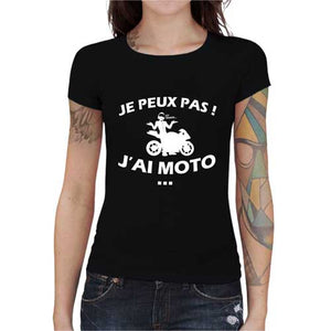 Vous êtes une femme geek, et fier de l’être ? Ou bien vous souhaitez faire plaisir à votre merveilleuse geekette ? Alors on n’a aucun doute que ce T shirt Motarde - Peux pas j'ai Moto ! va vous plaire !