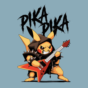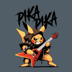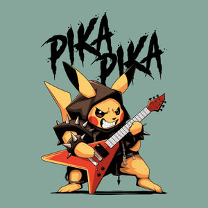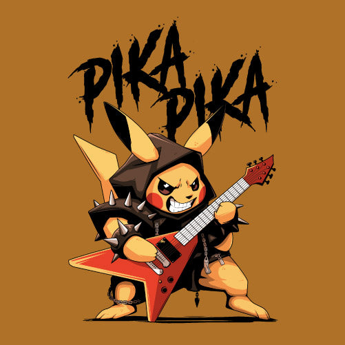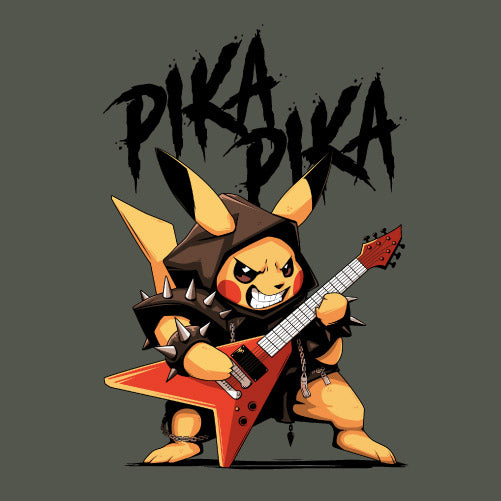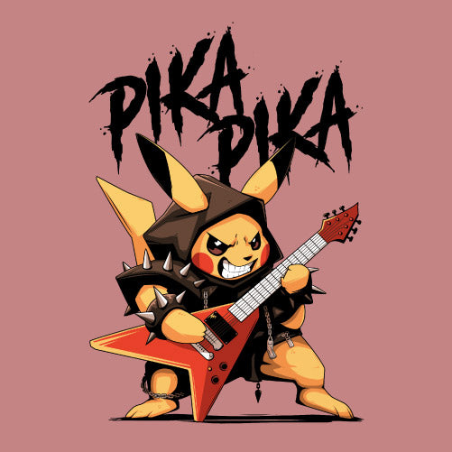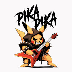 Pika Pika met en scène une petite créature électrique revisitée dans un style résolument rock et métal. Vêtue d’un déguisement inspiré de l’univers heavy metal, elle brandit une guitare électrique prête à faire vibrer la scène. Son attitude déterminée et son énergie débordante évoquent l’esprit rebelle des concerts rock, entre puissance sonore et liberté d’expression. Cette illustration célèbre la rencontre entre culture geek et univers musical, offrant un design explosif, dynamique et plein de caractère.
