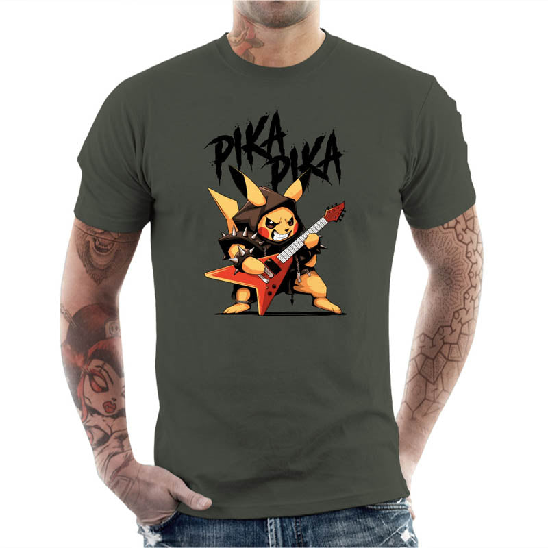Pika Pika met en scène une petite créature électrique revisitée dans un style résolument rock et métal. Vêtue d’un déguisement inspiré de l’univers heavy metal, elle brandit une guitare électrique prête à faire vibrer la scène. Son attitude déterminée et son énergie débordante évoquent l’esprit rebelle des concerts rock, entre puissance sonore et liberté d’expression. Cette illustration célèbre la rencontre entre culture geek et univers musical, offrant un design explosif, dynamique et plein de caractère.