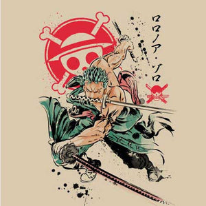 Avec sa classe naturelle, ses incomparables techniques au sabre, mais aussi son sale caractère et sa faculté à se perdre partout, Zoro Roronoa s’est imposé comme l’un des personnages les plus badass de One Piece ! On a voulu lui rendre hommage avec un tee-shirt ultra stylé et dynamique, qui ne manquera pas de combler les fans du fabuleux manga d’Eiichirō Oda !