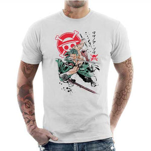 Avec sa classe naturelle, ses incomparables techniques au sabre, mais aussi son sale caractère et sa faculté à se perdre partout, Zoro Roronoa s’est imposé comme l’un des personnages les plus badass de One Piece ! On a voulu lui rendre hommage avec un tee-shirt ultra stylé et dynamique, qui ne manquera pas de combler les fans du fabuleux manga d’Eiichirō Oda !