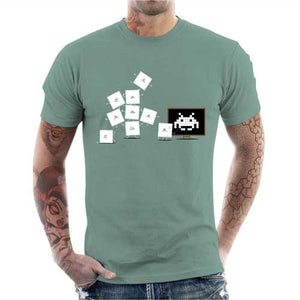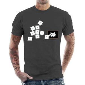 Le saviez-vous ? Pour former un sprite, c’est tout un programme ! Ce tee-shirt humoristique le montre bien, en coulisses les pixels doivent s’entraîner dur pour créer des combinaisons parfois complexes, histoire que le personnage ou l’élément affiché à l’écran soit parfaitement représenté. Ici, nul doute qu’il va falloir encore pas mal de boulot à ces pixels débutants pour former un Space Invader correct…