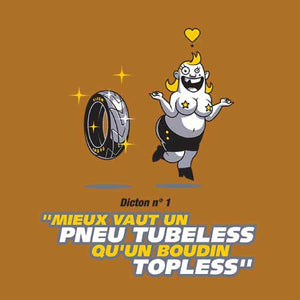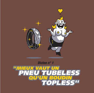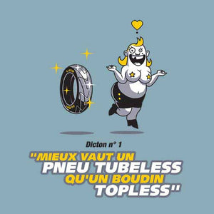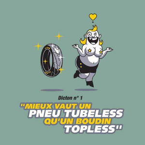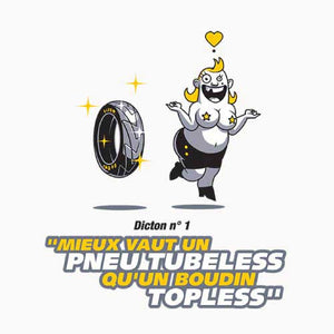 Vous en conviendrez amis motards, mieux vaut avoir un bon pneu tubeless plutôt qu'un boudin topless (seins nus). Une illustration et un dicton tout simplement hilarants, nouvelle preuve s’il en était que chez Checkpoint on sait faire preuve d’un humour plein de finesse. Le genre de tee-shirts qui va bien faire rire vos copains motards, et accessoirement enchanter belle-maman lors des déjeuners du dimanche. Vous l’aurez compris, tout simplement indispensable !