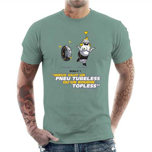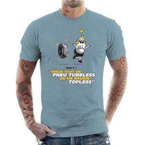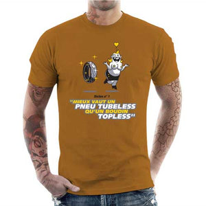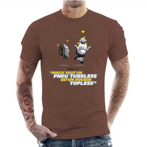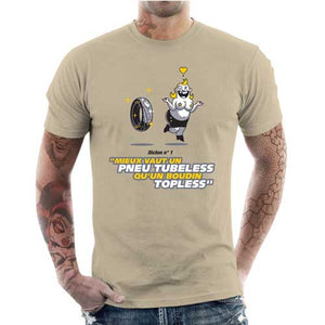 Vous en conviendrez amis motards, mieux vaut avoir un bon pneu tubeless plutôt qu'un boudin topless (seins nus). Une illustration et un dicton tout simplement hilarants, nouvelle preuve s’il en était que chez Checkpoint on sait faire preuve d’un humour plein de finesse. Le genre de tee-shirts qui va bien faire rire vos copains motards, et accessoirement enchanter belle-maman lors des déjeuners du dimanche. Vous l’aurez compris, tout simplement indispensable !