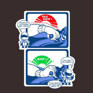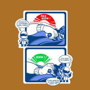 Parce que le pilotage ne s’improvise pas, Checkpoint a créé ce tee-shirt très pédagogique pour que vous puissiez sensibiliser vos amis motards à l’importance de l’angle du poignet à moto. Très facile à comprendre, cette illustration les aidera instantanément à corriger leur geste pour gagner en vitesse, et ainsi éviter de mettre la honte à leurs collègues à deux roues. Un tee-shirt original et bourré d’humour pour tous les fous de moto !