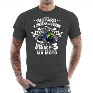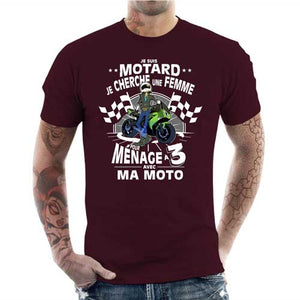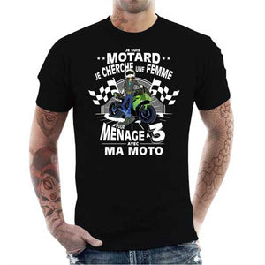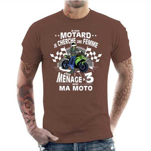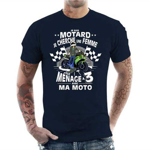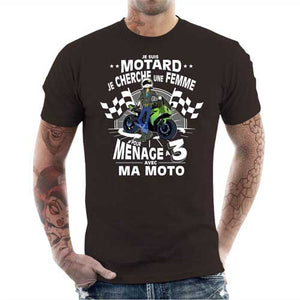 Pas forcément simple pour un motard célibataire de trouver l’âme sœur ! Car la prétendante ne partagera pas seulement sa vie, mais aussi… celle de sa moto ! Cet engin qu’il bichonne chaque jour, avec qui il passe tellement de temps, et auquel il tient comme à la prunelle de ses yeux. Que l’heureuse élue soit prévenue, ce sera un véritable ménage à trois ! La moto, elle, n'est pas jalouse, et acceptera l'arrivée d'une femme.