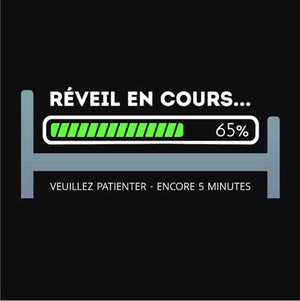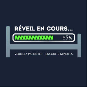 Se lever facilement et rapidement le matin n’est pas à la portée du premier venu, n’est-ce pas ? Si vous aussi vous avez le snooze facile, et qu’il vous faut toujours quelques minutes de plus, alors vous allez adorer cette illustration représentant le calvaire du réveil à la façon d’une barre de téléchargement. Le tee-shirt geek par excellence !