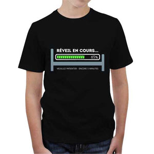 Votre enfant a déjà bien grandi, et vous souhaitez continuer sa formation de jedi geek ? Pas besoin de risquer de le blesser avec un sabre laser, on a beaucoup mieux pour lui: ce T-shirt enfant geek - Réveil en cours !