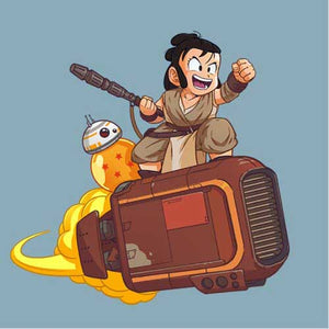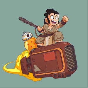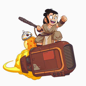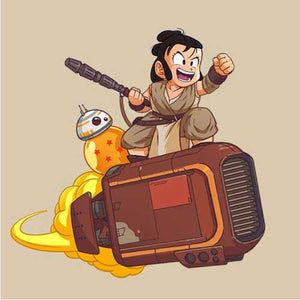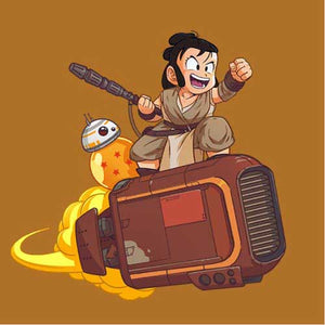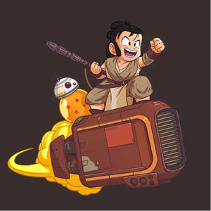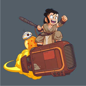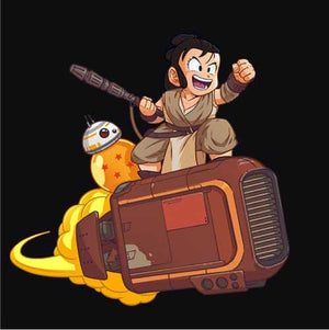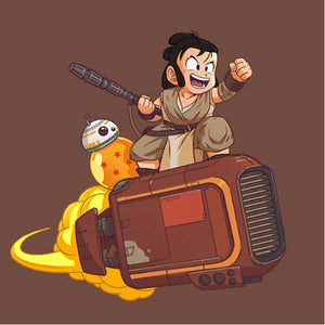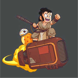 Star Wars et Dragon Ball, deux références cultes qu’on a adoré fusionner sur ce t-shirt ! Bien qu’elle soit au cœur d’une troisième trilogie pour le moins controversée, Rey n’en reste pas moins une héroïne attachante, dont on a pris beaucoup de plaisir à suivre les aventures aux côtés de Poe, Finn, Kylo Ren et BB8 ! Histoire de la représenter d’une façon stylée et originale, on a opté pour ce rendu absolument incroyable, clin d'œil évident au manga culte d’Akira Toriyama. Vous aurez d’ailleurs noté que BB8 est constitué de la boule de cristal de Son Gohan ! Un irrésistible tee-shirt Dragon Ball et Star Wars.