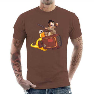 Star Wars et Dragon Ball, deux références cultes qu’on a adoré fusionner sur ce t-shirt ! Bien qu’elle soit au cœur d’une troisième trilogie pour le moins controversée, Rey n’en reste pas moins une héroïne attachante, dont on a pris beaucoup de plaisir à suivre les aventures aux côtés de Poe, Finn, Kylo Ren et BB8 ! Histoire de la représenter d’une façon stylée et originale, on a opté pour ce rendu absolument incroyable, clin d'œil évident au manga culte d’Akira Toriyama. Vous aurez d’ailleurs noté que BB8 est constitué de la boule de cristal de Son Gohan ! Un irrésistible tee-shirt Dragon Ball et Star Wars.