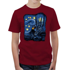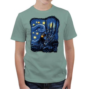Quand la Terre du Milieu rencontre l’impressionnisme ! Ce design unique revisite l’univers de Sauron à la manière de Van Gogh, inspiré de la célèbre Nuit étoilée. En premier plan, l’imposant Sauron domine la scène, tandis qu’en arrière-plan, le Mordor s’étend sous un ciel tourbillonnant et vibrant de couleurs. Le volcan en éruption projette ses flammes dans l’atmosphère tourmentée, créant un contraste saisissant entre la lumière et les ténèbres. Un t-shirt parfait pour les fans de Le Seigneur des Anneaux et d’art, mêlant la puissance du mal et l’esthétique envoûtante de la peinture impressionniste