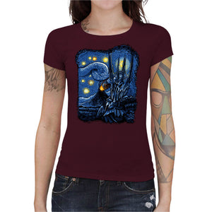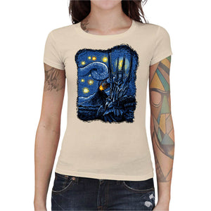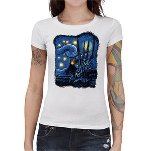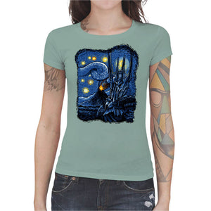 Quand la Terre du Milieu rencontre l’impressionnisme ! Ce design unique revisite l’univers de Sauron à la manière de Van Gogh, inspiré de la célèbre Nuit étoilée. En premier plan, l’imposant Sauron domine la scène, tandis qu’en arrière-plan, le Mordor s’étend sous un ciel tourbillonnant et vibrant de couleurs. Le volcan en éruption projette ses flammes dans l’atmosphère tourmentée, créant un contraste saisissant entre la lumière et les ténèbres. Un t-shirt parfait pour les fans de Le Seigneur des Anneaux et d’art, mêlant la puissance du mal et l’esthétique envoûtante de la peinture impressionniste