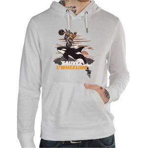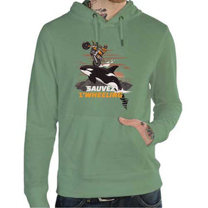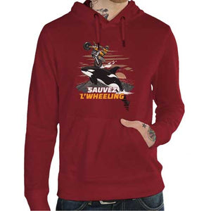Les premières fraicheurs arrivent, et vous n’êtes plus sûr que votre tee-shirt va suffire ? Pas de panique ! Ce Sweat Moto - Sauvez Wheeling ! va tout simplement vous sauver la vie !