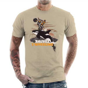 Chez Checkpoint on est toujours friands de jeux de mots débiles, et en voici un dont on est particulièrement fiers : Sauvez l’wheeling ! Vous ne rêvez pas, il s’agit bien d’une rencontre 100% improbable entre le film américain tout mimi des années 90 et la figure acrobatique pour casse-cou des deux roues. Un tee-shirt bien WTF alliant nostalgie et humour, et donc complètement indispensable, surtout pour faire marrer vos potes motards.