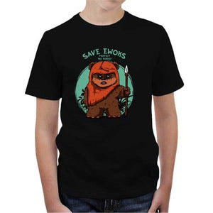Votre enfant a déjà bien grandi, et vous souhaitez continuer sa formation de jedi geek ? Pas besoin de risquer de le blesser avec un sabre laser, on a beaucoup mieux pour lui: ce T-shirt enfant geek - Save Ewoks !