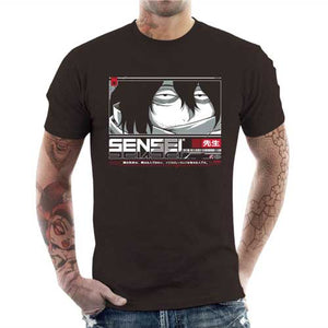 Parmi la ribambelle de maîtres se distinguant dans les shonen, Shota Aizawa est un de ceux qu’on préfère. Pas étonnant du coup qu’on l’ait intégré à notre ligne de tee-shirts sensei ! Ce personnage emblématique de My Hero Academia est bien sûr hyper puissant, mais il n’est pas dénué de défauts: sévère, nonchalant, voire flemmard, il est néanmoins toujours là pour aider ses élèves et les faire progresser. En outre, son alter d’effacement est très classe. Pour ce t-shirt My Hero Academia, on a choisi de représenter Shota avec son air détaché, comme s’il sortait du lit. Un modèle classe et décalé qui ravira les fans du manga et de l’anime !
