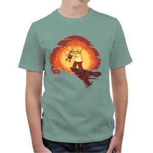 Votre enfant a déjà bien grandi, et vous souhaitez continuer sa formation de jedi geek ? Pas besoin de risquer de le blesser avec un sabre laser, on a beaucoup mieux pour lui: ce T-shirt enfant geek - Simpson King !