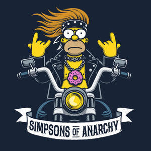 Le t-shirt "Simpsons Anarchy" propose un crossover délirant entre l’univers déjanté des Simpsons et l’ambiance rebelle de Sons of Anarchy. On y découvre Homer Simpson sur une moto rugissante, lâchant le guidon pour faire le célèbre signe des bikers. Fidèle à lui-même, il porte une grosse chaîne autour du cou ornée d'un donut, clin d’œil parfait à sa gourmandise légendaire. Ce design allie humour, esprit rock et culture pop dans un visuel dynamique et décalé. Parfait pour les fans de Simpsons, d’univers de motards et de mash-ups inattendus !