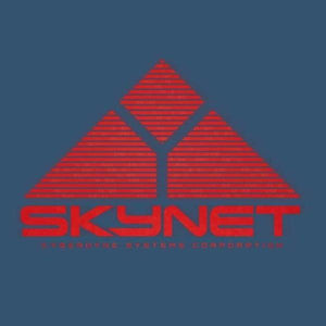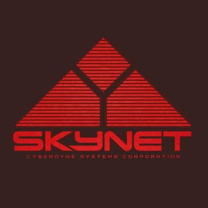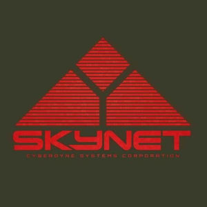 Bien des fans de science-fiction se posent la question, verra-t-on un jour l’émergence d’une intelligence artificielle qui prendra le contrôle des machines pour éradiquer l’espèce humaine ? C’est en tout cas le sinistre dessein de Skynet, célèbre IA de la saga Terminator, créée par Cyberdine et Miles Dyson. On lui a consacré un tee-shirt, qui propose tout le charme vintage des logos d’autrefois !