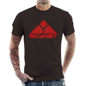 Bien des fans de science-fiction se posent la question, verra-t-on un jour l’émergence d’une intelligence artificielle qui prendra le contrôle des machines pour éradiquer l’espèce humaine ? C’est en tout cas le sinistre dessein de Skynet, célèbre IA de la saga Terminator, créée par Cyberdine et Miles Dyson. On lui a consacré un tee-shirt, qui propose tout le charme vintage des logos d’autrefois !