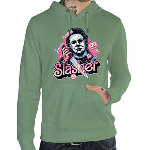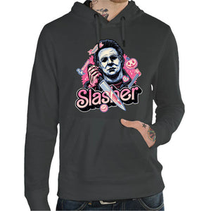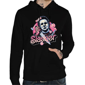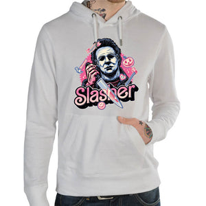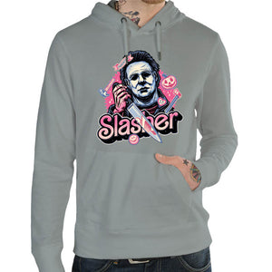 Ce t-shirt unique mélange l'univers du film d'horreur Halloween avec l'esthétique rose et glamour de Barbie pour un effet à la fois terrifiant et décalé. Mike Myers, avec son couteau emblématique, apparaît dans un style Barbie, entouré de couleurs vives et flashy qui tranchent avec sa nature sinistre. Le mot "Slasher" est écrit en gros pour affirmer fièrement l'amour du genre. Ce t-shirt est parfait pour les fans de films d'horreur qui aiment aussi l'humour et l'ironie. Un design qui allie l'effrayant et le fun, pour un look vraiment unique et provocateur !