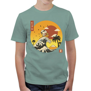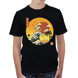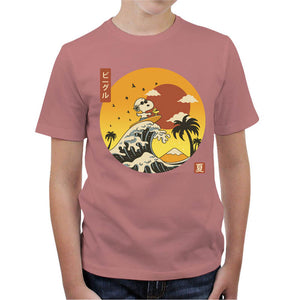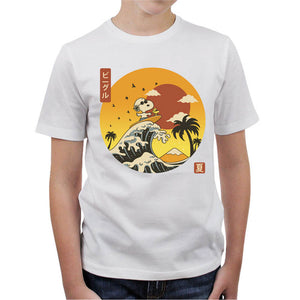 Ce t-shirt unique met en scène Snoopy et son fidèle ami Charlie Brown, surfant ensemble sur la célèbre Vague de Kanagawa, dans un style cartoon amusant et coloré. Inspiré de l'iconique estampe japonaise, ce design revisite l'art traditionnel avec une touche de pop culture, rendant hommage à l'amitié et à l'esprit d'aventure. Avec des couleurs vives et un graphisme accrocheur, ce t-shirt capture l'énergie joyeuse d'une journée à la plage, avec une bonne dose d'humour et de nostalgie. Idéal pour les fans de Snoopy, des Peanuts, et de l'art japonais revisité de façon ludique.