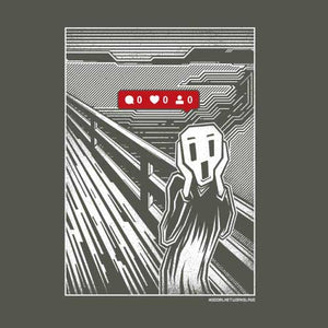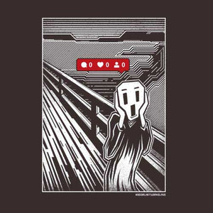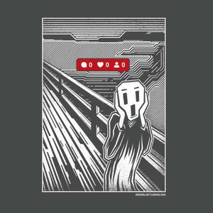 En bon internaute ultra connecté que vous êtes, ce t-shirt ne peut que vous plaire ! Imaginez un peu l’angoisse de vous réveiller un matin sans aucun like, sans aucune notification sur votre smartphone… Abandonné de tous, seul au monde, même ! Intolérable, n’est-ce pas ? Clin d'œil à la célèbre œuvre Le Cri, cette illustration stylée et bourrée de second degré tape bien sûr là où ça fait mal… Un t-shirt qui va sans nul doute vous valoir une pluie de likes lorsque vous vous montrerez avec sur Instagram.