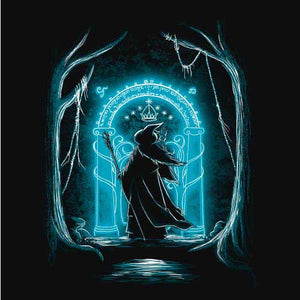 Parlez ami et entrez… Cette énigme qui attend Gandalf et la Communauté de l’anneau pour ouvrir la porte de Durin des mines de la Moria est plus compliquée qu’il n’y paraît, surtout lorsque dans l’étang voisin, une terrible créature menace de s’inviter à la fête ! Une des nombreuses scènes inoubliables du Seigneur des Anneaux, que l’on a été enchantés d’adapter avec ce t-shirt à l’esthétique particulièrement soignée.