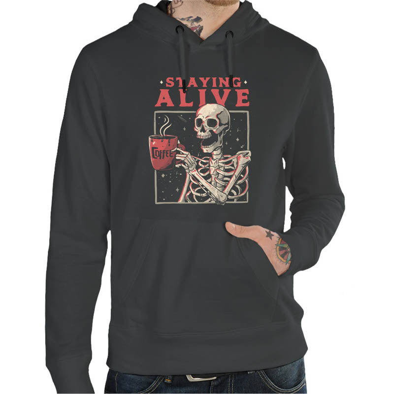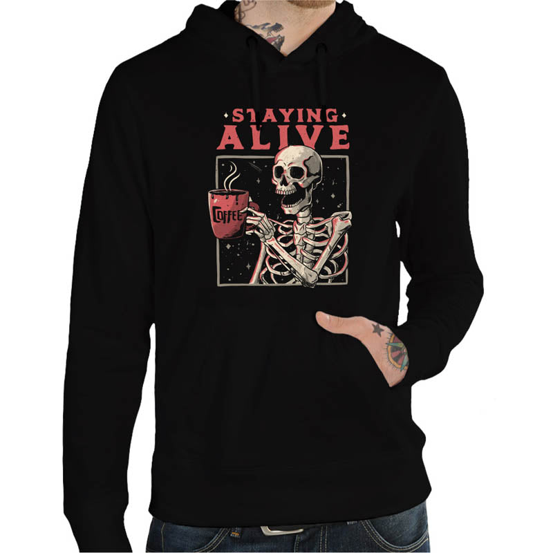 Les premières fraicheurs arrivent, et vous n’êtes plus sûr que votre tee-shirt va suffire ? Pas de panique ! Ce Sweat - Staying Alive va tout simplement vous sauver la vie !