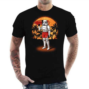 La planète Scarif, vue dans l’excellent Rogue One, possède un charme certain. Au sein de l’Empire, on fait même la queue pour être affecté à ce coin de paradis ! Lorsqu’ils ne sont pas aux prises avec les rebelles, ou en train de construire l’Etoile de la Mort, les stormtroopers profitent ainsi allègrement de la plage et des cocotiers. Un tee-shirt Star Wars ultra stylé qui sent bon l’été !