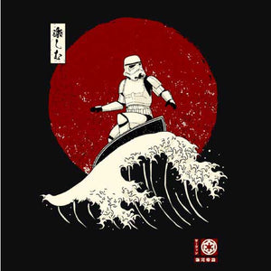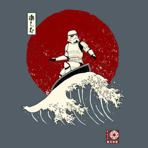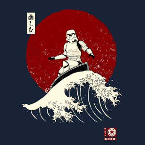 La coolitude de ce tee-shirt Star Wars n’a pas pu vous échapper ! Reconnaissables entre mille, les stormtroopers figurent parmi les personnages emblématiques de la légendaire saga. Pas très malins, cibles faciles et piètres tireurs, les soldats de l’Empire sont toujours envoyés au casse-pipe, et n’ont pas forcément un rôle très enviable. Mais on les aime quand même ! Fidèle à nos valeurs de créer des t-shirts originaux et délirants, on vous propose ce modèle incroyable d’un stormtrooper surfant la Grande Vague de Kanagawa, estampe iconique de la culture japonaise. Classe et décalé, c’est le coup de cœur assuré !
