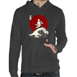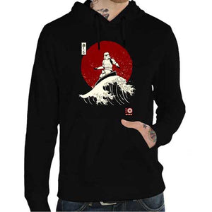 La coolitude de ce tee-shirt Star Wars n’a pas pu vous échapper ! Reconnaissables entre mille, les stormtroopers figurent parmi les personnages emblématiques de la légendaire saga. Pas très malins, cibles faciles et piètres tireurs, les soldats de l’Empire sont toujours envoyés au casse-pipe, et n’ont pas forcément un rôle très enviable. Mais on les aime quand même ! Fidèle à nos valeurs de créer des t-shirts originaux et délirants, on vous propose ce modèle incroyable d’un stormtrooper surfant la Grande Vague de Kanagawa, estampe iconique de la culture japonaise. Classe et décalé, c’est le coup de cœur assuré !