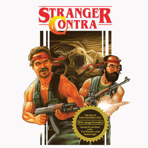 Un hommage explosif à la pop culture des années 80 ! Le t-shirt "Stranger Contra" revisite l’iconique jaquette du jeu Contra sur NES en remplaçant les héros originaux par Jim Hopper et Murray Bauman, les personnages cultes de Stranger Things. Fidèle à l’esthétique rétro, l’illustration reprend les couleurs vives, le style musclé et l’ambiance militaire exagérée qui ont marqué toute une génération de joueurs. Un mash-up parfait pour les nostalgiques de l’époque 8-bit et les fans de la série, alliant action, humour et référence geek ultime. Ce t-shirt est un must-have pour les amoureux des années 80 !