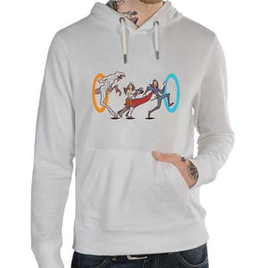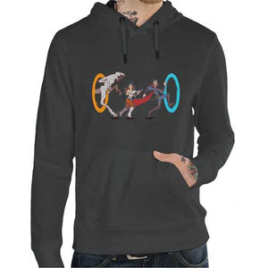 Ce n’est rien de moins qu’un magnifique crossover de portails qu’on vous propose avec ce t-shirt geek ! Qu’il s’agisse du super-héros Doctor Strange, grand spécialiste des menaces interdimensionnelles, de la série Stranger Things, où l’on est constamment baladé entre deux mondes, et du jeu vidéo Portal, dans lequel le gameplay est basé sur la téléportation physique à travers des portails, les aventures sont riches en rebondissements, et surtout… en téléportations ! Une chose est sûre, Chell et Stephen Strange vont avoir besoin de toutes leurs capacités pour échapper au Demogorgon. Un tee-shirt classe et original qui ne demande qu’à se téléporter jusqu’à vous !
