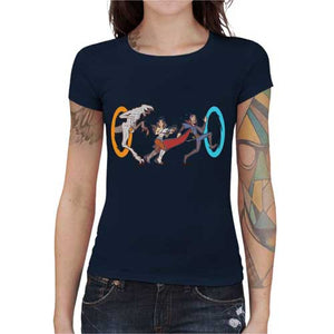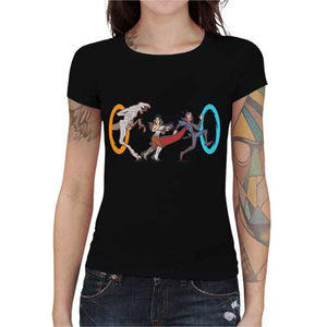 Ce n’est rien de moins qu’un magnifique crossover de portails qu’on vous propose avec ce t-shirt geek ! Qu’il s’agisse du super-héros Doctor Strange, grand spécialiste des menaces interdimensionnelles, de la série Stranger Things, où l’on est constamment baladé entre deux mondes, et du jeu vidéo Portal, dans lequel le gameplay est basé sur la téléportation physique à travers des portails, les aventures sont riches en rebondissements, et surtout… en téléportations ! Une chose est sûre, Chell et Stephen Strange vont avoir besoin de toutes leurs capacités pour échapper au Demogorgon. Un tee-shirt classe et original qui ne demande qu’à se téléporter jusqu’à vous !