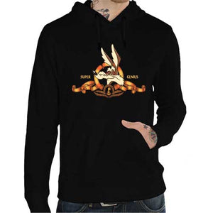 Rien de tel qu’un tee-shirt Bip Bip et le Coyote pour replonger en pleine nostalgie de l’époque Ça Cartoon et des dessins animés Looney Tunes ! Le paradoxe avec le coyote, c’est qu’il est incroyablement inventif pour fabriquer des pièges et autres plans diaboliques, mais qu’il s’avère assez bête, et surtout très malchanceux, lorsqu’il s’agit de les réaliser. Si ce personnage attachant et désopilant à bercé votre enfance, vous adorerez porter notre t-shirt Super Genius, qui se veut une parodie de l’emblématique logo de la MGM. Un super génie, on n’est pas sûrs, mais en tout cas il n’abandonne jamais !