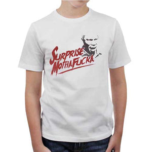 Votre enfant a déjà bien grandi, et vous souhaitez continuer sa formation de jedi geek ? Pas besoin de risquer de le blesser avec un sabre laser, on a beaucoup mieux pour lui: ce T-shirt enfant geek - Surprise Motha Fucker !