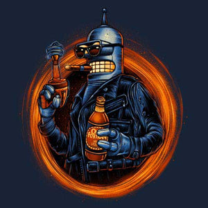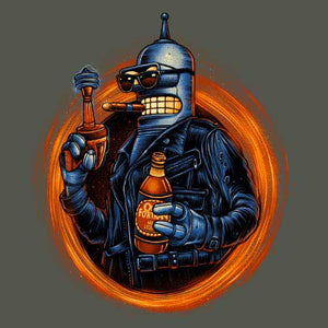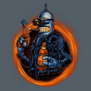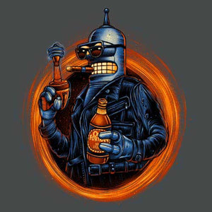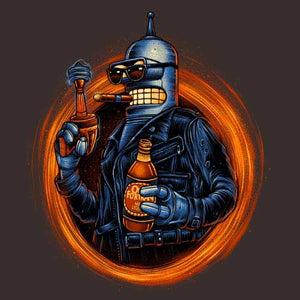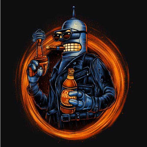 Voilà un modèle à ranger parmi nos t-shirt crossover les plus surpuissants ! Chez Checkpoint on adore mélanger les références, les personnages, les situations… Plus le mix est improbable, plus il est inoubliable ! Ici, on se retrouve donc avec le très attachant robot Bender, pilier de la série Futurama, dans la peau du T-800 de Terminator ! Bien sûr, impossible de ne pas le doter de sa boisson favorite, qui lui donnera un bon coup de boost pour aller pulvériser ou secourir Sarah Connor, selon son humeur. Un tee-shirt humoristique aussi badass, ce n’est que du bonheur !