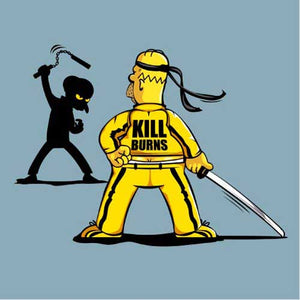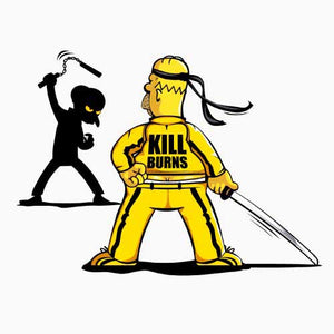 Les Simpson se prête particulièrement aux parodies et aux détournements, et ce t-shirt crossover en est un magnifique exemple ! Charles Montgomery Burns, principal antagoniste de la série culte de Matt Groening, est typiquement le personnage qu’on adore détester. Méchant, acariâtre et vénal, il est bien sûr une caricature du capitaliste dans ce qu’il a de plus vil. Si vil qu’Homer a décidé de lui régler son compte une bonne fois pour toutes, à la manière de La Mariée dans Kill Bill ! Le combat s’annonce sanglant… Un tee-shirt bourré d’humour pour les fans des Simpson et du cinéma de Quentin Tarantino.