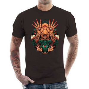 Si l’ogre du Labyrinthe de Pan vous a marqué, voire traumatisé, alors vous n’avez pas pu passer à côté de ce t-shirt dédié au chef-d'œuvre de Guillermo del Toro ! Œuvre unique et inclassable, oscillant avec brio entre film historique et conte fantastique, Le Labyrinthe de Pan est une expérience inoubliable, à commencer bien sûr par ses personnages ! Sur ce magnifique tee-shirt, tout en détails et en symétrie, vous aurez bien sûr reconnu l’ogre et ses mains bien flippantes, mais aussi le faune, personnage mystérieux et inquiétant. Un must-have pour les amoureux de septième art !