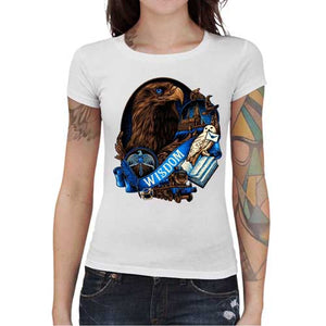 Difficile de rester insensible face à la majesté de cet aigle, n’est-ce pas ? S’il est aussi présent sur ce t-shirt, c’est tout simplement parce qu’il est le symbole de Serdaigle, l’une des quatre grandes maisons de l’école Poudlard. Les élèves qui l’intègrent sont connus pour leur sagesse et leur ardeur au travail. On ne sera pas étonnés que la très sérieuse Hermione ait été à deux doigts d’y partir, avant de finalement intégrer Gryffondor aux côtés de Harry et Ron. Serdaigle est votre maison de cœur ? Alors ce somptueux tee-shirt Harry Potter ne demande qu’à rejoindre votre collection !