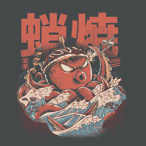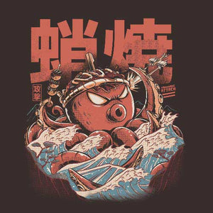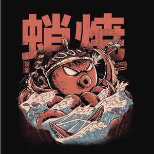 À force de se gaver de délicieux Takoyaki, cette spécialité d’Osaka à base de poulpe, les japonais ont fini par réveiller un terrible monstre digne des meilleurs films de kaijus ! À côté de lui, Godzilla n’avait pas l’air si énervé, finalement… Un magnifique tee-shirt au style rétro, que les aficionados du Japon, de sa culture et de sa gastronomie adoreront porter en toutes circonstances.