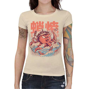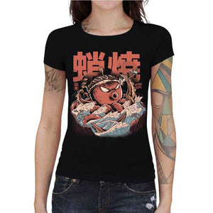 À force de se gaver de délicieux Takoyaki, cette spécialité d’Osaka à base de poulpe, les japonais ont fini par réveiller un terrible monstre digne des meilleurs films de kaijus ! À côté de lui, Godzilla n’avait pas l’air si énervé, finalement… Un magnifique tee-shirt au style rétro, que les aficionados du Japon, de sa culture et de sa gastronomie adoreront porter en toutes circonstances.